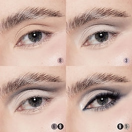Application des teintes métalliques et marbrées : Pour un effet intense, appliquer au doigt directement sur la paupière mobile. Pour un fini plus diffus, utiliser un pinceau plat légèrement humidifié.
