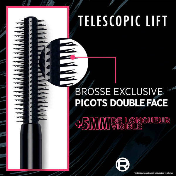 Découvrez le nouveau Mascara volume et longueur Telescopic Lift de L'Oréal Paris. Jusqu'à +5mm de longueur visible pour des cils d'une autre dimension. Sa formule est enrichie en céramide pour des cils intensément fortifiés. Sa brosse exclusive aux picots double face vous procurera longueur et lift. S'adapte à tous les types de cils.