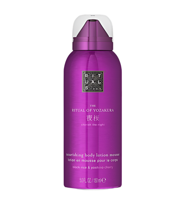 La mousse pour le corps Ritual of Yozakura est une lotion innovante à la texture légère et aérienne qui fond instantanément sur la peau. Inspirée de la floraison nocturne des cerisiers Yozakura au Japon, elle associe une hydratation intense à une expérience sensorielle unique. Enrichie en extrait de fleur de cerisier et en huile de riz, cette mousse nourrit la peau tout en laissant un parfum délicat, floral et apaisant. Parfaite pour un moment de bien-être quotidien, elle pénètre rapidement sans laisser de film gras, laissant la peau douce, souple et subtilement parfumée.