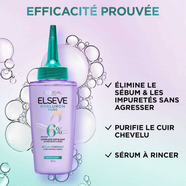 Cuir chevelu gras ? Le Sérum Purifiant enrichi à 6% de complexe exfoliant aux Acides Salicylique et glycolique purifie votre cuir chevelu sans l'agresser.