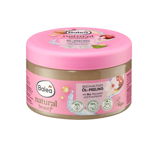 Le gommage Natural Beauty de Balea est un gommage huileux enrichi en huile d’amande bio et extrait de fleur de cerisier. Il est doux pour la peau et offre un nettoyage agréable, laissant la peau douce et fraîche.